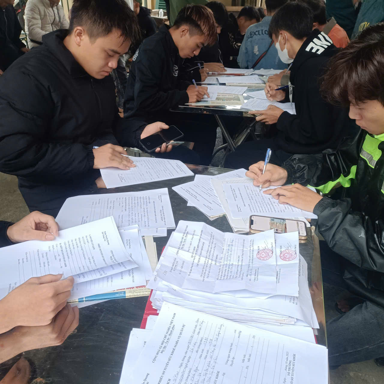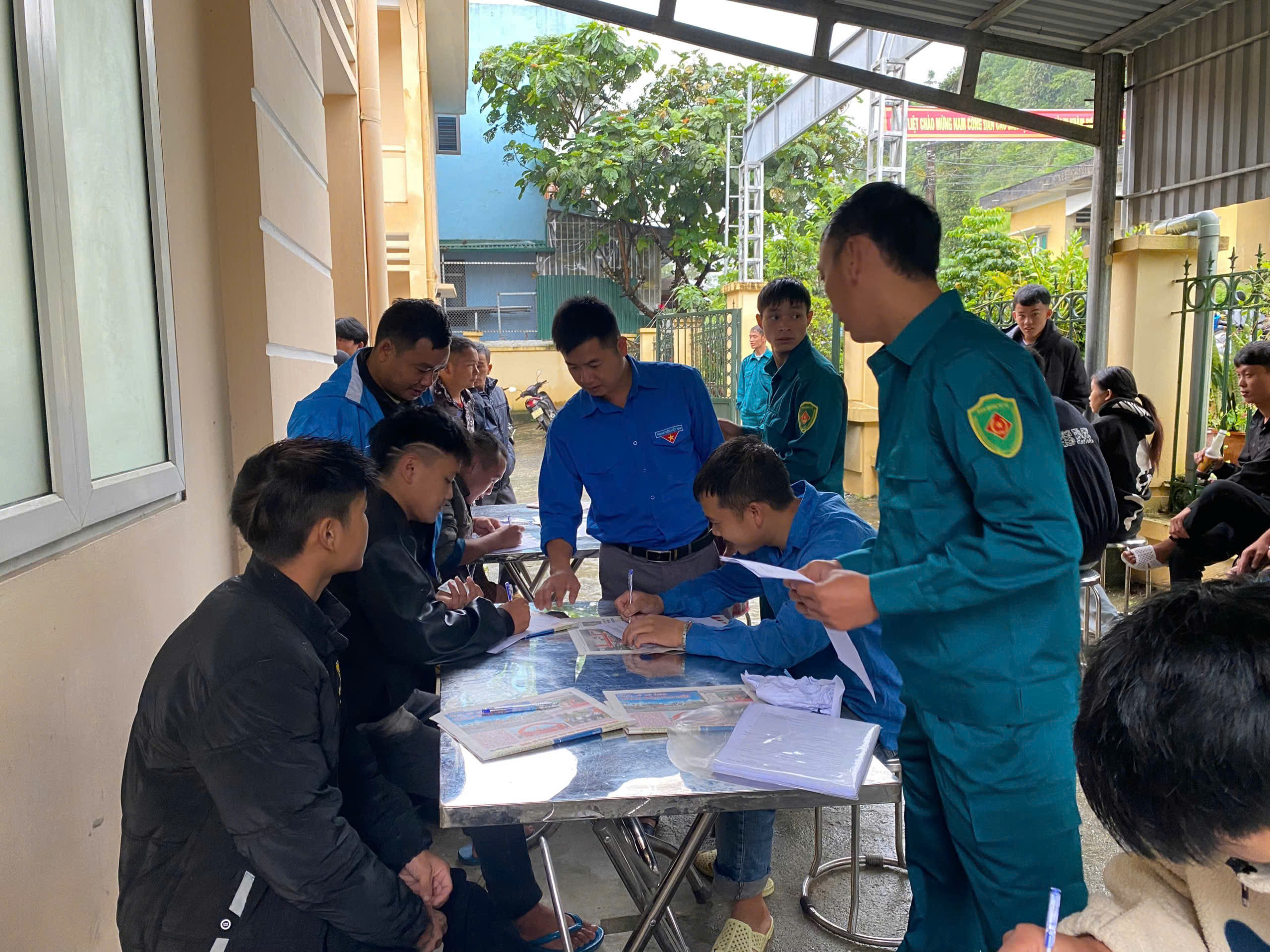 Trong 02 ngày khám sơ tuyển có sự hỗ trợ của các đồng chí đoàn viên, thanh niên hướng dẫn các thanh niên ghi các thông tin cá nhân.