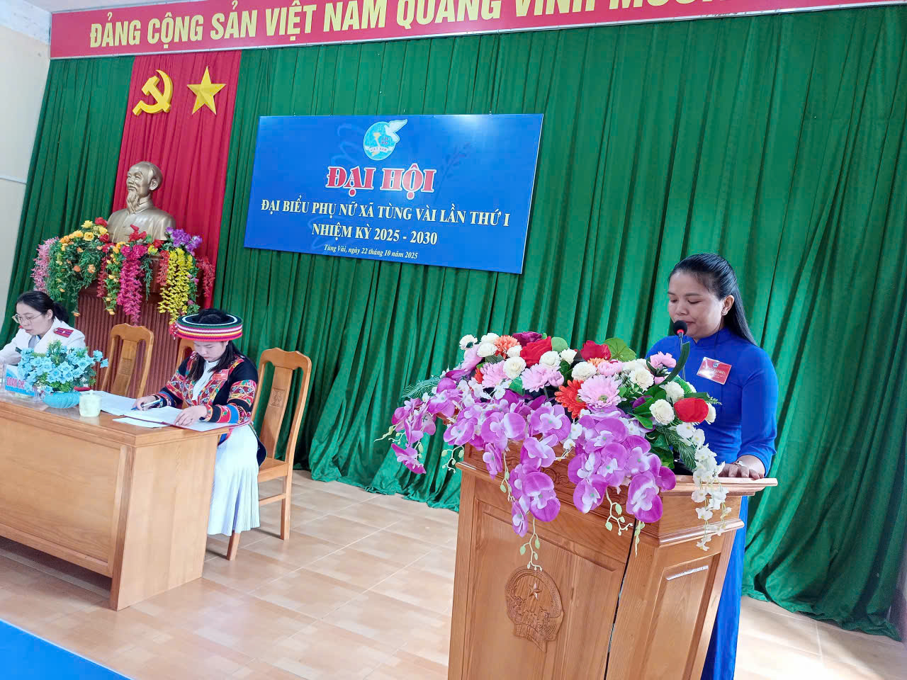 Sáng 22/10, Hội Liên hiệp Phụ nữ xã Tùng Vài long trọng tổ chức Đại hội đại biểu Hội Liên hiệp Phụ nữ lần thứ I, nhiệm kỳ 2025–2030. Dự Đại hội có đồng chí Nguyễn Văn Chinh, Phó bí thư Thường trực Đảng ủy xã Tùng Vài; Thường trực HĐND – UBND - Ủy ban MTTQ Việt Nam xã Tùng Vài; Lãnh đạo các, ban ngành đoàn thể; Với sự tham dự của 100 đại biểu chính thức đại diện cho 2.830 hội viên phụ nữ trong toàn xã. Đây là sự kiện chính trị quan trọng, đánh dấu bước phát triển mới của công tác phụ nữ trên địa bàn xã, mở ra một nhiệm kỳ với nhiều kỳ vọng và định hướng phát triển mới.