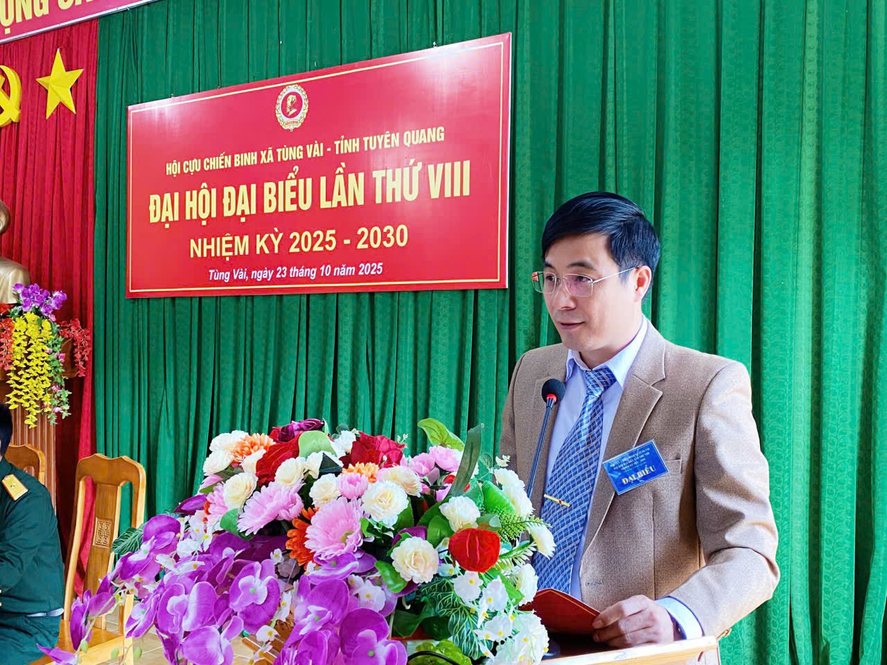 Phát biểu chỉ đạo tại Đại hội, đồng chí Nguyễn Văn Chinh, Phó Bí thư thường trực Đảng ủy xã đánh giá cao những kết quả đạt được của Hội CCB xã Tùng Vài trong nhiệm kỳ qua, đồng thời mong muốn trong thời gian tới, Hội tiếp tục phát huy truyền thống tốt đẹp, tích cực tham gia xây dựng Đảng, chính quyền, phát triển kinh tế - xã hội, góp phần xây dựng xã Tùng Vài ngày càng giàu đẹp, văn minh.