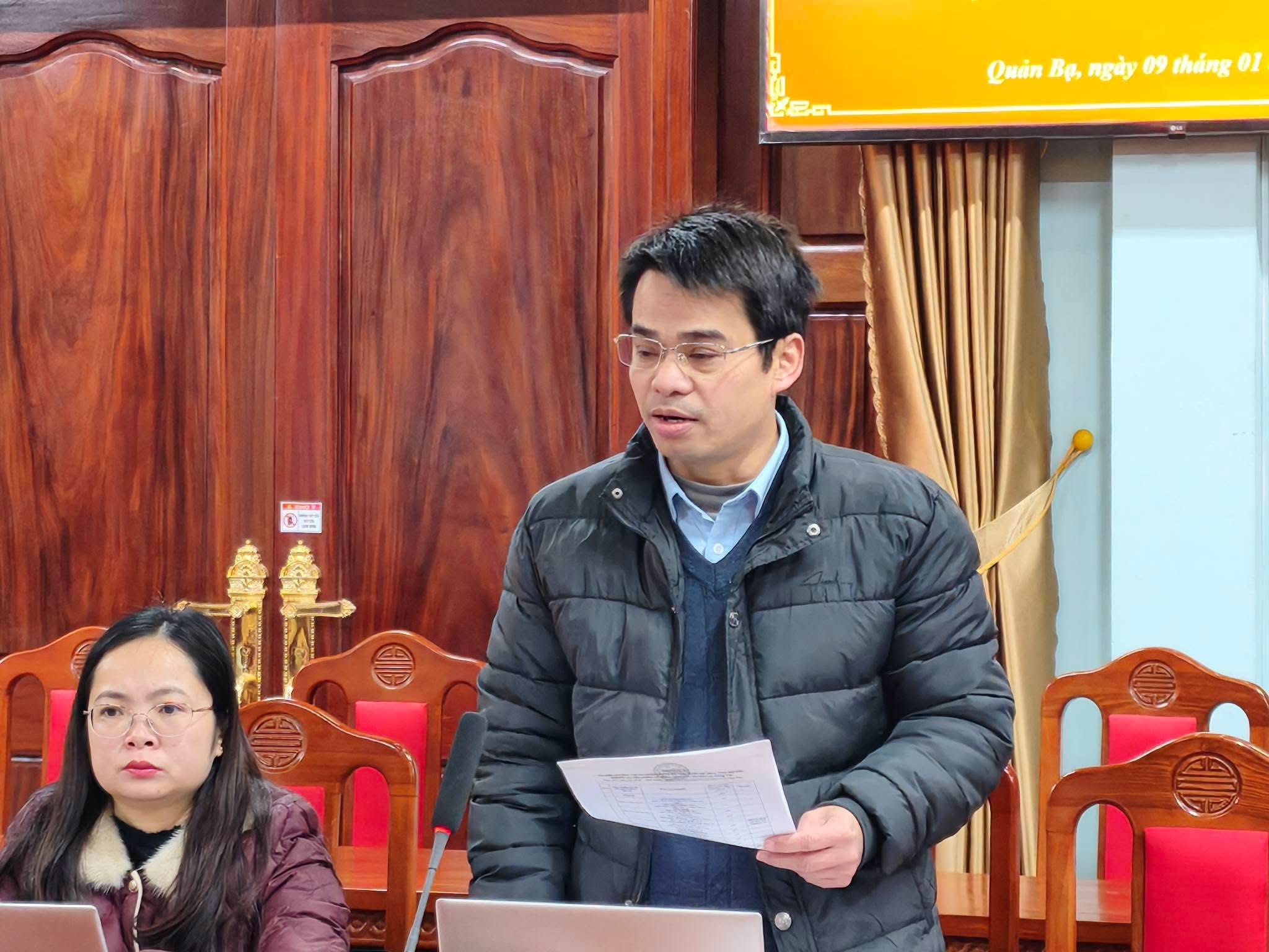 Đồng chí Nguyễn Văn Lý, PBT- Chủ tịch UBND xã Tùng Vài báo cáo công tác chuẩn bị bầu cử đại biểu Quốc hội khóa XVI và bầu cử đại biểu HĐND các cấp nhiệm kỳ 2026–2031.