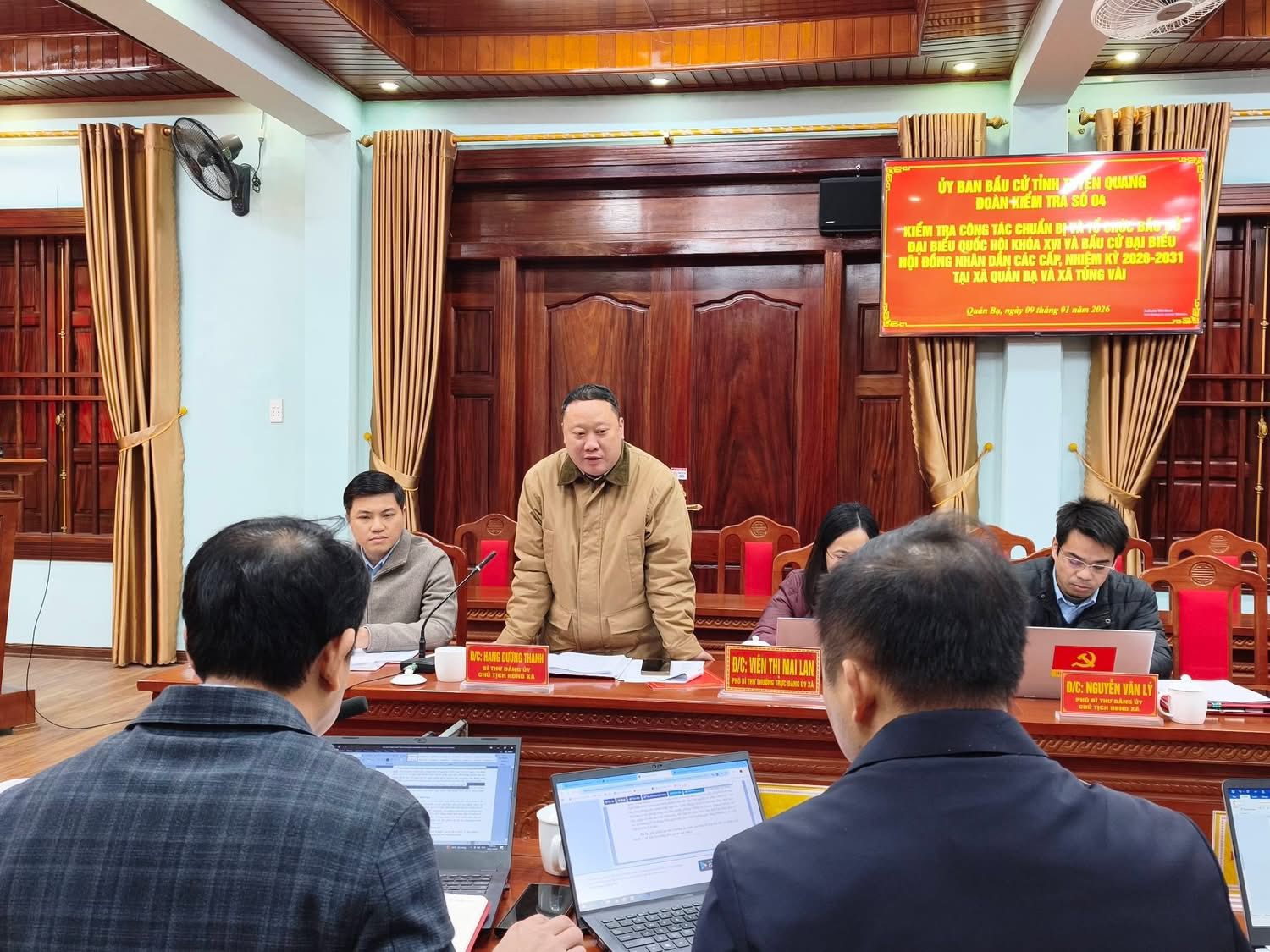 Tại buổi làm việc, xã Tùng Vài báo cáo kết quả triển khai công tác chuẩn bị bầu cử; xã đã triển khai nghiêm túc các văn bản chỉ đạo về công tác bầu cử đại biểu Quốc hội khóa XVI và bầu cử đại biểu HĐND các cấp nhiệm kỳ 2026–2031. Ủy ban bầu cử xã ban hành kế hoạch, quy chế làm việc, phân công nhiệm vụ cho các thành viên; thành lập tổ giúp việc và tiểu ban phục vụ công tác bầu cử. Công tác hiệp thương lần thứ nhất được tổ chức đúng quy định; các hoạt động tuyên truyền, bảo đảm an ninh trật tự, giải quyết khiếu nại, tố cáo được triển khai đồng bộ…