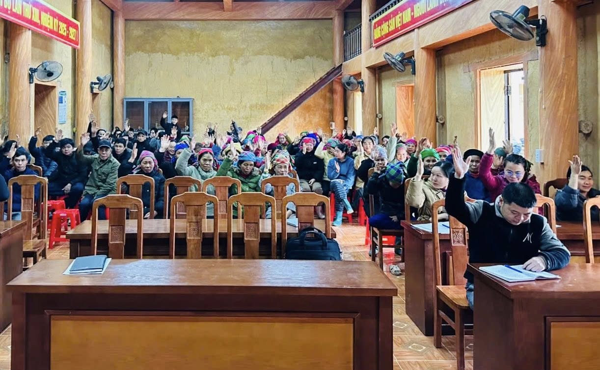Cử tri thôn Bản Thăng biểu quyết nhất trí tại Hội nghị
