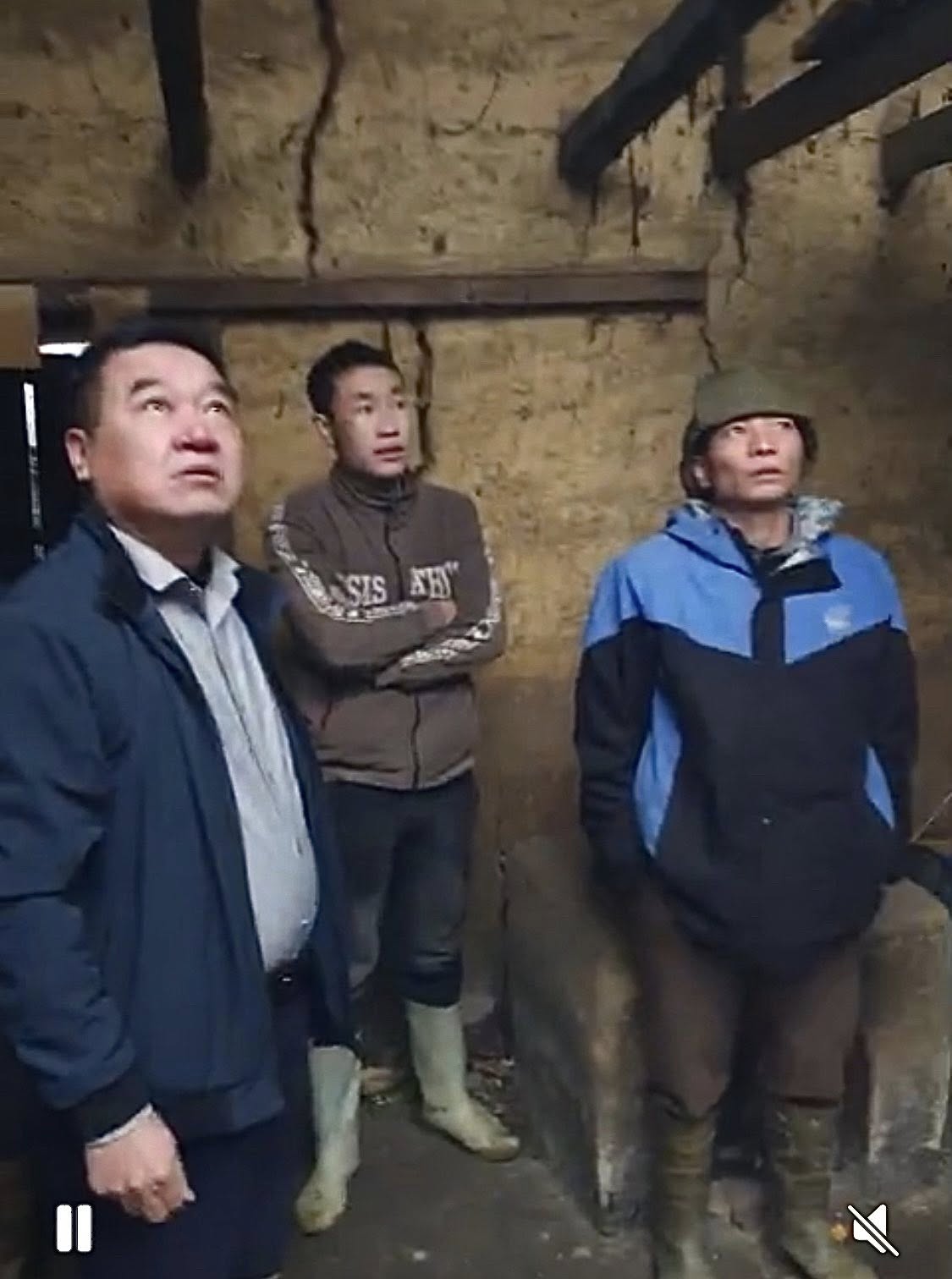 Đồng chí Nguyễn Hữu Nghiệp, Phó Chủ tịch UBND xã kiểm tra thực tế tại khu vực sập (Ảnh cắt từ video CTV)