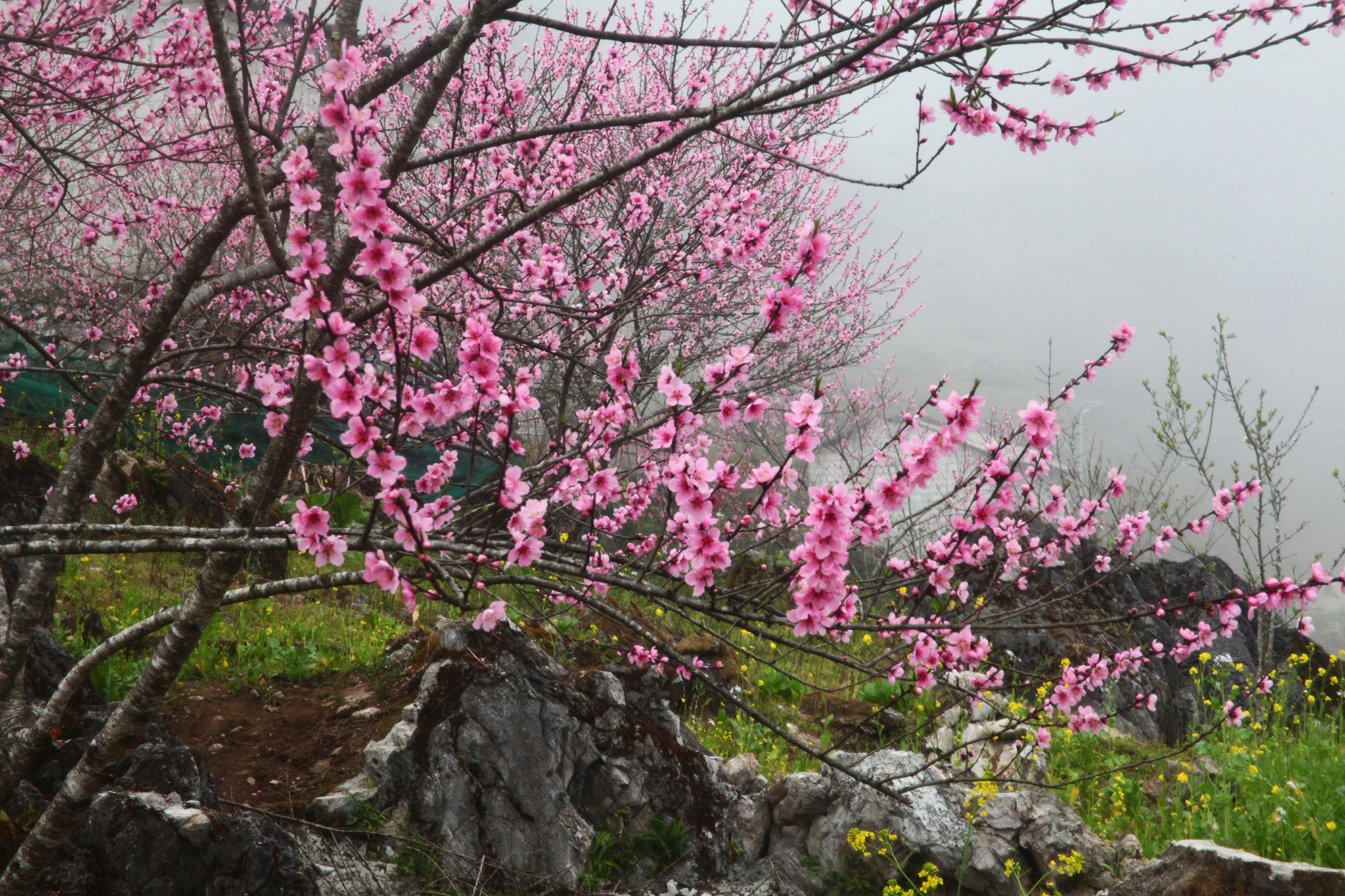 Rực rỡ hoa đào nở muộn trên biên cương Tùng Vài