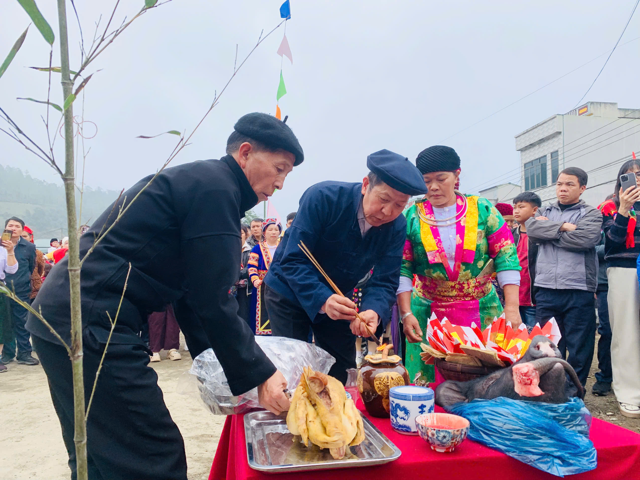 Thầy cúng dân tộc Mông thực hiện lễ cúng nghi lễ dựng cây Nêu