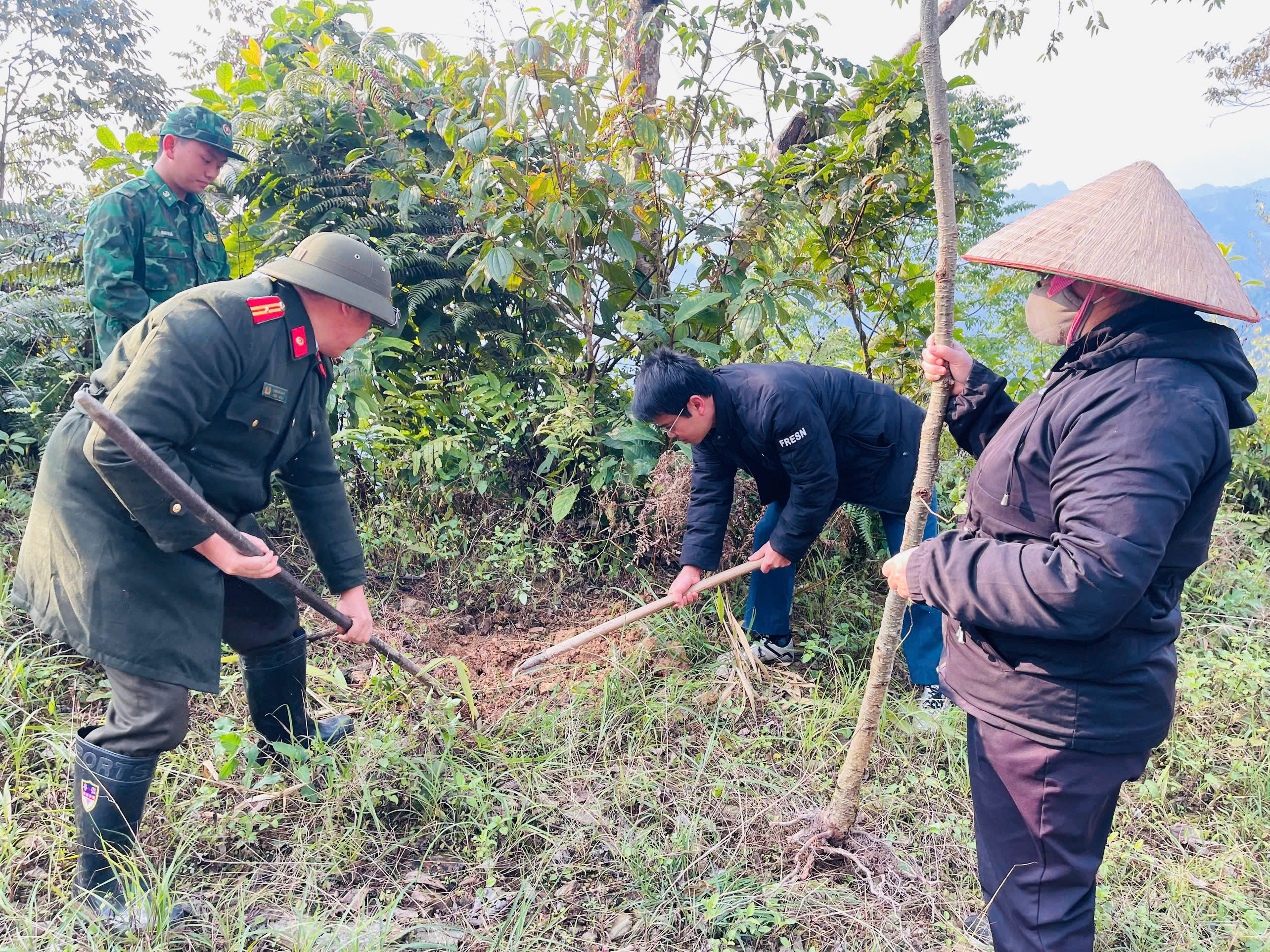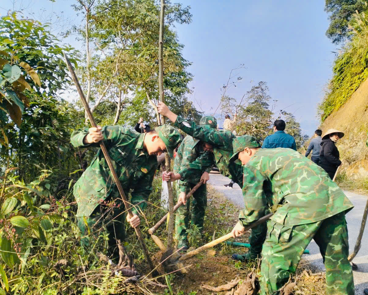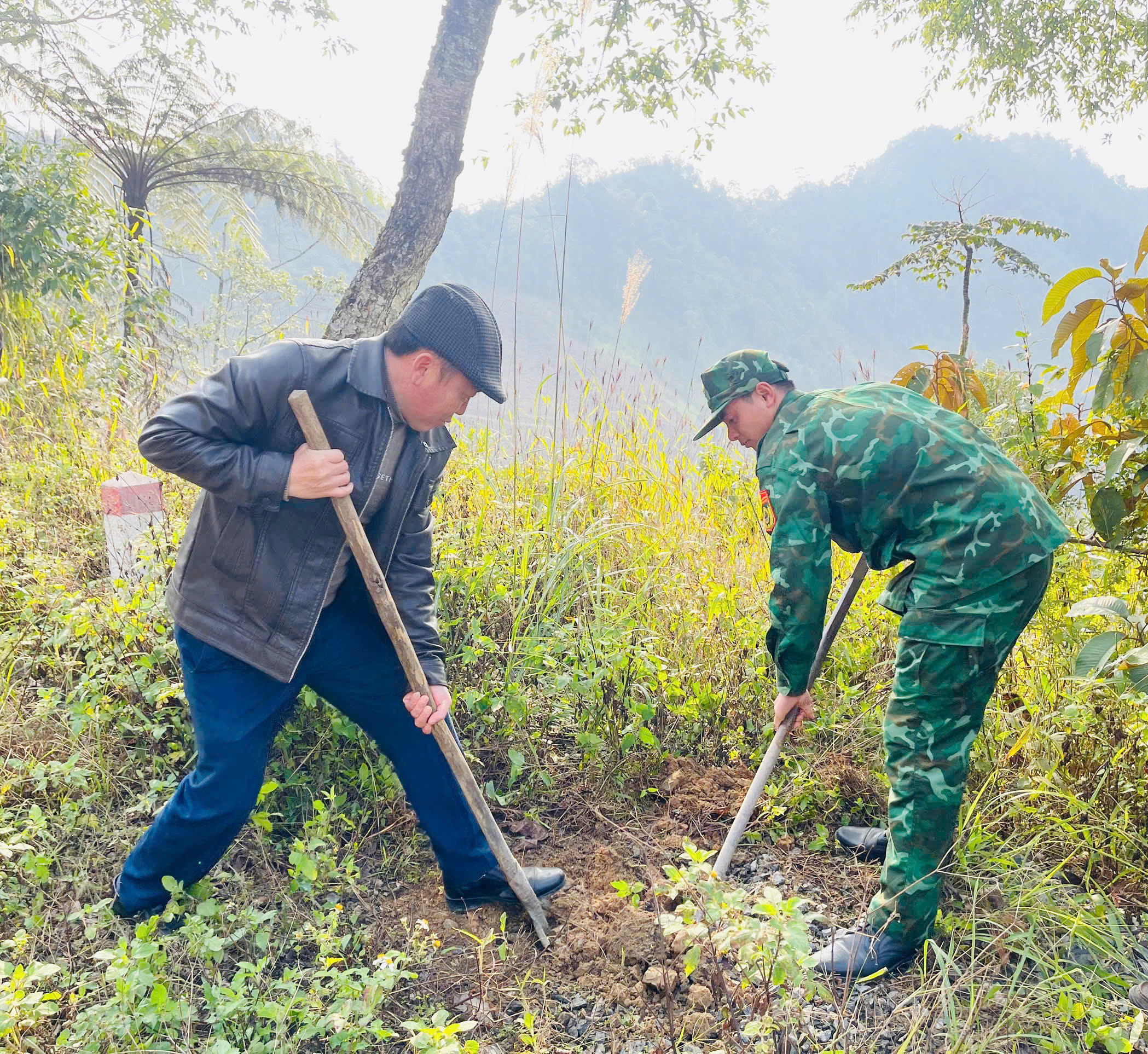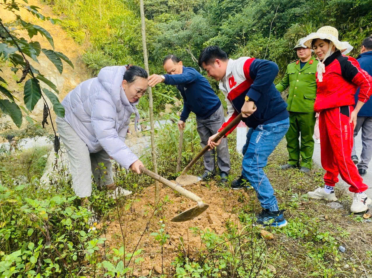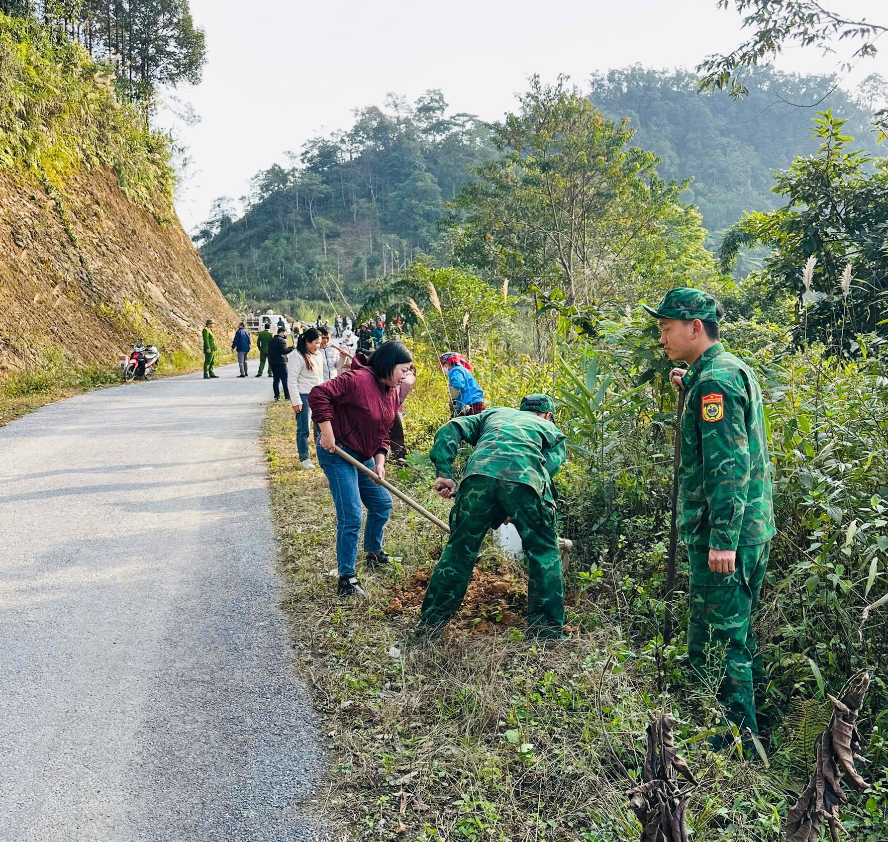 Tại thôn Suối Vui, gần 100 cán bộ xã, lực lượng Biên phòng Đồn Biên phòng Tùng Vài, đoàn viên, hội viên cùng bà con các dân tộc trong thôn đã có mặt từ rất sớm để chuẩn bị trồng cây 300 cây tống quáng sủa dọc hai bên đường trung tâm xã, tạo cảnh quan và bóng mát. Toàn bộ diện tích cây mới trồng đã được bàn giao cho các thôn bản quản lý, chăm sóc và theo dõi sinh trưởng đảm bảo tỷ lệ sống cao.