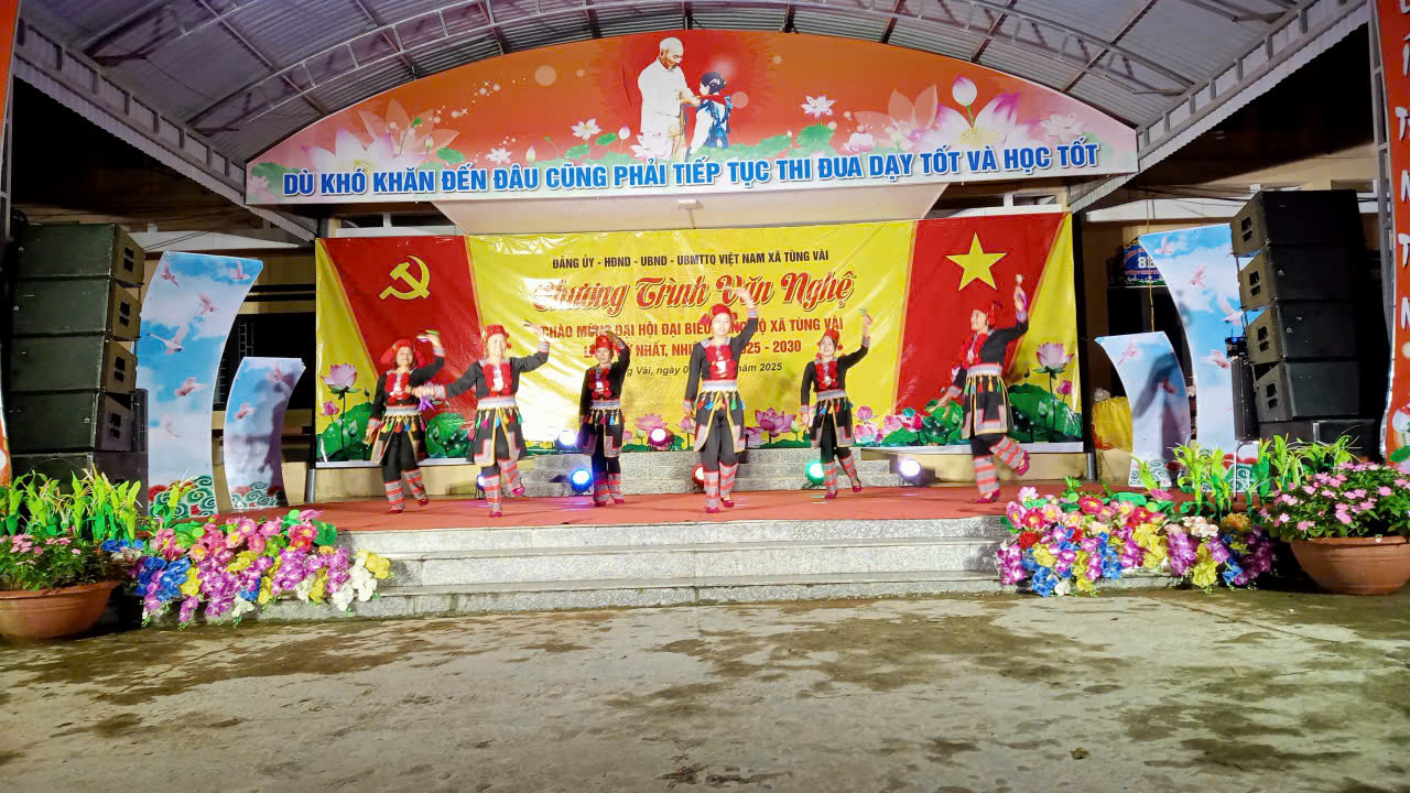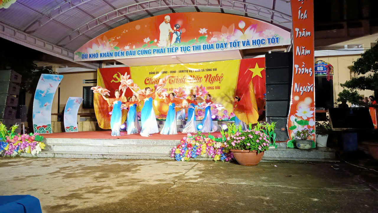 Chương trình văn nghệ diễn ra sôi nổi với nhiều tiết mục đặc sắc do các đội văn nghệ của trường học, đoàn nghệ thuật Cổng trời xanh và chi đoàn các thôn biểu diễn, ca ngợi Đảng, Bác Hồ, quê hương đất nước đổi mới và tinh thần đoàn kết toàn dân tộc. Mỗi tiết mục đều được chuẩn bị công phu, thể hiện tình cảm chân thành, lòng biết ơn sâu sắc và niềm tin tưởng của nhân dân vào sự lãnh đạo của Đảng.